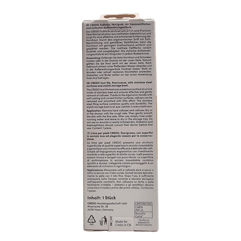Perfect for all skin types, it's designed to be gentle yet effective, giving you professional-level results every time. Keep your feet looking and feeling their best with the Credo Double-Plated Foot File. Comes with its own stand for storage.