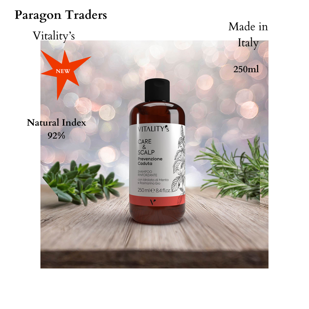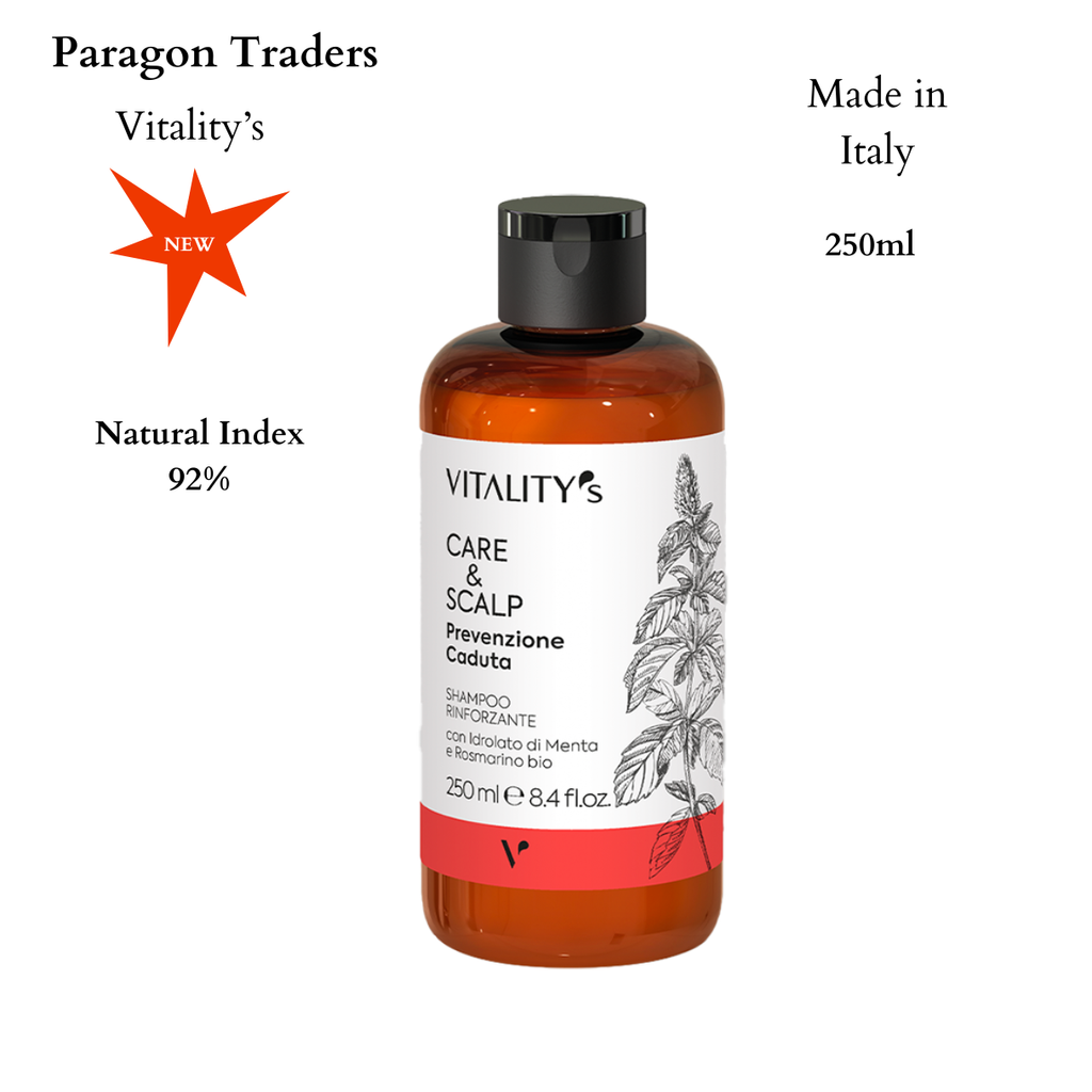 Advanced scientific research by Vitality’s laboratories has given rise to an extraordinary formula enriched with Caffeine and Organic Mint and Rosemary Hydrolats that strengthen hair, preventing its weakening and limiting hair loss.
